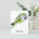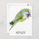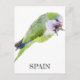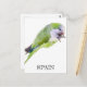 Painting of wild green parrot on the green bush in a park in Spain. Also known as the Monk parakeet or Quaker parrot
