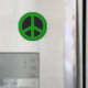 Peace symbol refrigerator magnet in green and black.