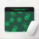 Dark green mouse pad with light green peace signs and editable text field. Personalize with names, work units, sarcasm, whatever.
