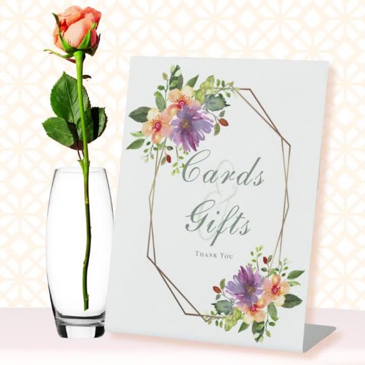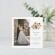 Green Peach Purple Floral Photo Wedding Thank You Invitation