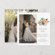 This thank you card features a photo on the front and a vibrant bouquet of green, peach and purple flowers. This watercolor floral highlights your message as you thank your guests. The back showcases your second photo for a personal touch