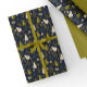Green Pear Watercolor Pattern on Dark Blue Wrapping Paper