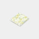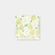 A pattern of vibrant green pears in shades of yellow and green with bright green leaves. Some of the pears are halved to show the juicy insides and seeds.