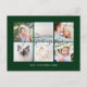 Dark Green Personalised 6 family photos professional sage green Universal Greetings Postcards featuring a stylish photo collage with 6 customised images, your greetings message in elegant handwritten script font, your name, date, year, message on the back in a modern and simple sans serif font.