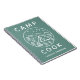 Green and white summer camp cook notebook personalised with a name. Modern design with mountains, a campfire, a forest, the moon and stars, and a camping tent.
