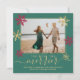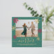 Modern, Elegant Green, Red and Gold Snowflakes Photo Christmas Pregnancy Announcement Cards. Expecting parents! Features one (1) photo template, red and gold snowflakes, with the text "the more the merrier". The "merrier" word is written in a swirly hand lettered typography font on green or middle forest green colour background. Burgundy colour back side. This winter pregnancy card great to share your happy news with family and friends in the holiday season. Easy to personalise it. If you need help or matching items, please contact to designer!