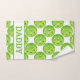 Perfect as a gift for pickleball players. Hand towel with green pickleball pattern and customisable text at the bottom.