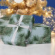 An elegant and sophisticated holiday wrapping paper featuring green white pine branch garlands on the diagonal against a lively wintery dusty blue colour background.