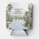 Elevate your vacation rental with our Green Pine Forest Family Lake House Cabin Can Cooler. Featuring woodland watercolor illustration. Personalise it and add a touch of nature charm to your lake house.