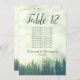 These beautiful wedding table number cards include a seating chart or a list of ten names making it even easier for your guests to find their tables. The rustic yet elegant design features a backdrop of green mountain pine trees shrouded in mist or fog. These cards are larger than standard making it easy for your guests to find their tables.