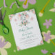 Green Pink Cute Floral Elephant Frame Baby Shower Invitation