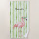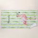 Green Pink Flamingo Beach Towel