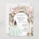 Green pink florals arch Sweet 16 invitation