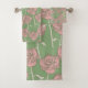 Green Pink Rose Retro Y2K 70s Flower Pattern Bath Towel Set