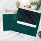 Send your holiday cards in style with this elegant tartan envelope design. The exterior features a deep green background accented with a coquette bow monogram for a sophisticated touch, while the interior reveals a festive green and pink plaid liner. Perfectly coordinated with holiday cards and stationery, these envelopes add a polished, personalised finish to your seasonal correspondence. Ideal for families, professionals, or businesses looking to elevate their Christmas mailings.