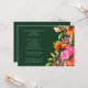 This bold and elegant engagement party invitation features vibrant watercolor florals in pink, orange, and gold on a deep green background. Perfect for a chic evening celebration or wine bar gathering, it blends modern style with romantic floral details. Fully customisable for your event.