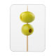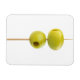 Green pitted olives on a skewer magnet