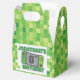 This customizable treat box features a pixel-style green design perfect for gamers. Add your child’s name and age to create a unique party favor for guests.