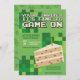Green Pixelated Gamer Cake Kids Birthday Invitation