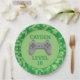Green Pixelated level up Video Game Birthday Party Paper Plate