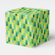 This party favour box features a pixelated pattern of squares in shades of green designed with geeks and gamers in mind. The pattern resembles 16 bit images used in many popular video and computer games.