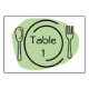 Colourful customised table cards dotted with plates, knives and fork illustration. Ideal for general catering, parties or businesses. (6 colours to choose from or mix and match)