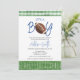Simple it's a boy football themed baby shower invitation featuring a watercolor football, decorative blue text, touchdown and a green plaid pattern. Great for a soon to be football loving parents.