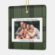 This simple classic Christmas ornament features one photo on the front surrounded by a traditional festive eucalyptus green plaid frame. The festive fabric gives it a wintry vibe and the text template allows you to create your own personalised message. The back has a matching plaid pattern and second horizontal photo. This holiday card design is perfectly sophisticated and simple.