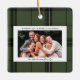 Green Plaid Custom Two Horizontal Photo Christmas Ceramic Ornament