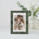This simple classic Christmas postcard features one vertical family photo on the front surrounded by a traditional festive eucalyptus green plaid frame. The festive fabric gives it a wintry vibe, and the text template allows you to create your own personalized message. This holiday card design is perfectly sophisticated and simple.