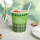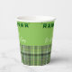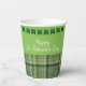 Green Plaid Flags Happy St Patrick`s Day Paper Cups. Happy St. Patricks`s Day text with green shamrocks on bunting flags and green plaid. You can change the text.