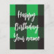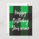 A cool green plaid pattern design with the words Happy Birthday Your name. Click personalise and add a name.