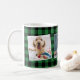 Modern and stylish customisable mug featuring green plaid pattern with three photo collage and monogram tag. Personalise by adding photos and monogram. This personalised mug will be perfect as a gift for birthdays, Mother's Day Father's day and Christmas.