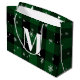 Green Plaid & Snowflakes Monogram Initial Winter Large Gift Bag