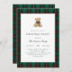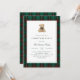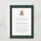 Green plaid patterned Christmas card with a cute teddy bear illustration.