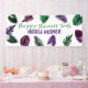 Festive plum purple, wild berry pink, and green birthday banner is a bold way to say happy Hawaii 5-0. Vibrant monstera leaves and ferns are colourful for a tropical themed 50th birthday party. Island green and plum purple leaves are versatile for a variety of coastal themed celebrations.