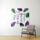 Celebrate a special 50th birthday with a Hawaii 5-0 party drape. Beautiful green and plum purple tropical leaves surround your personalised fiftieth birthday wording. Monstera leaves, ferns, and other island leaves with gold text is perfect for 50th birthday tapestries and banners.