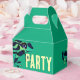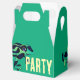 This tropical party giftbox features a green poison dart frog