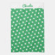 A stylish green and white tea towel, with a fun polka dot pattern. Personalise with the recipient's name, which will appear in green script typography on a white panel at one end of the towel.
