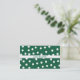 This elegant business card is perfect for any business or store. It features a forest green background with a white polkadot pattern on the top and bottom of the front. A white stripe runs through the centre. The back is a solid green. All text is customisable.