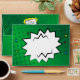 Pun pop art envelope in bright green with a white burst for the address. Speech bubble on the back flap for the return address.