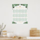This elegant and glamourous Quinceañera table seating chart features a gold crown and beautiful sage green floral arrangements with gold confetti. The text combines handwritten script and modern sans serif fonts for a classy and sophisticated look.