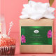 Make a lasting impression with this elegant and exotic product label design featuring lovely pink hawaiian flowers and palm leaves on a green background. A cool palm leaf shadow matching to the shimmery border frame.