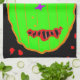 Scary fun Green Pumpkin Zombie with red yellow eyes, purple nose, red black mouth, brown stalk and look of red blood drops on black background. Festive Halloween kitchen towels to add some fun to your holiday decor. Original Graphic Artwork hand-painted design and text saying by our son © TamiraZDesigns. All rights reserved. Visit my store for more unique items at: www.zazzle.com/tamirazdesigns