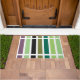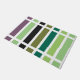 Geometric linear, rectangle, striped pattern of black, purple and green hues.