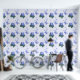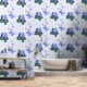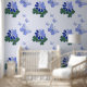 The Green Purple Blue Doodle Blooms Butterflies Accent Wallpaper, features in shades of periwinkle, a purple blue blossom with green leaves and pastel blue butterflies flying. It is great for a child's room. The design allows colour customisation by following the edit link. For more home and wall decor ideas, visit www.KBMD3signs.com. For custom design enquiries or customisation assistance, reach out to us at info@KBMD3signs.com.