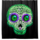 Green & Purple Glowing Sugar Skull Black Halloween Shower Curtain