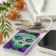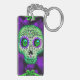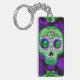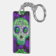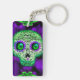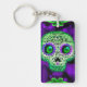 Green & Purple Glowing Sugar Skull Halloween Key Ring