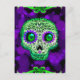 Green & Purple Glowing Sugar Skull Halloween Party Postcard