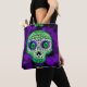 Green & Purple Glowing Sugar Skull Halloween Tote Bag